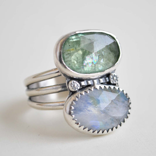 Moonstone and Green Kyanite Ring—Size 10
