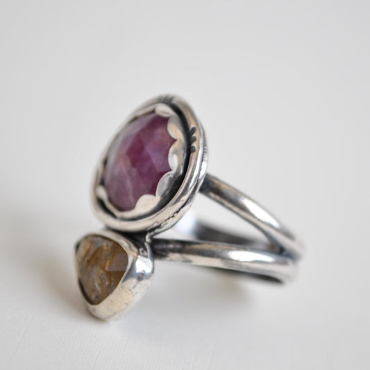 Ruby and Rutilated Quartz Ring—Size 8
