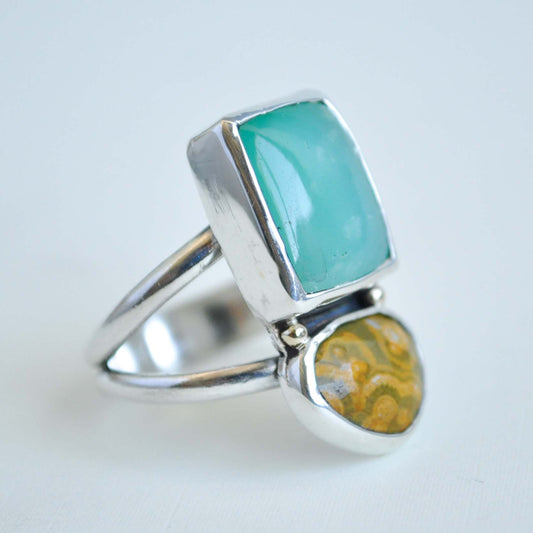 Chrysoprase and Ocean Jasper Ring—Size 9