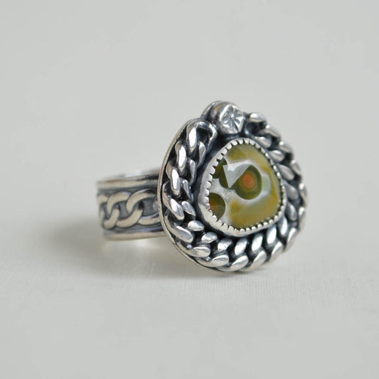 Chrysoprase and Ocean Jasper Ring—Size 9