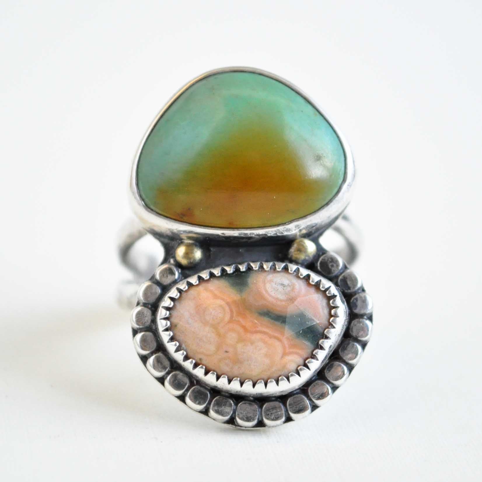 Turquoise and Ocean Jasper Ring—Size 8.5
